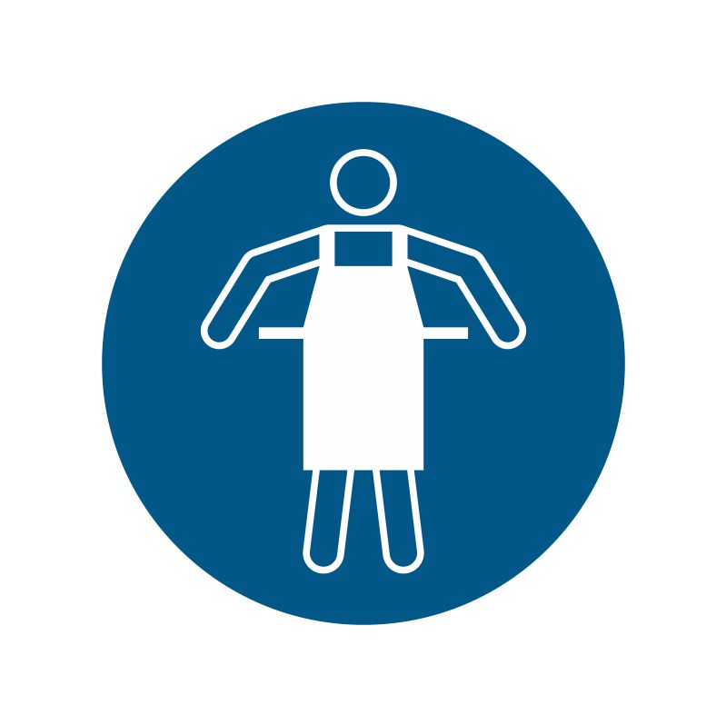 Beschermend schort verplicht Verkrijgbaar als high tack sticker of op aluminium (1 mm dik) in verschillende maten.