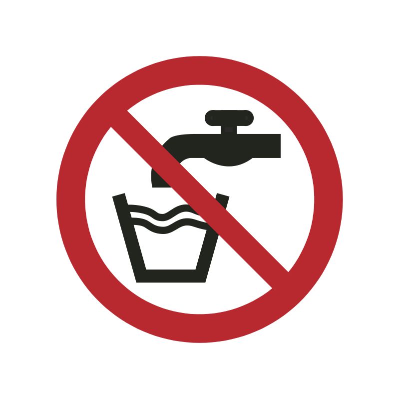 Geen drinkwater Verkrijgbaar als high tack sticker of op aluminium (1 mm dik) in verschillende maten.