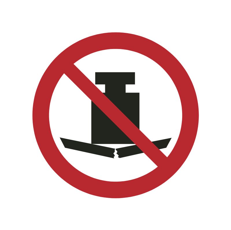 Verboden voor zware last Verkrijgbaar als high tack sticker of op aluminium (1 mm dik) in verschillende maten.