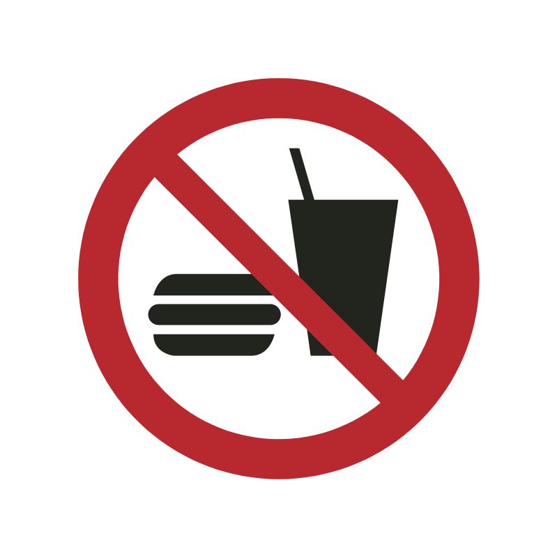 Eten en drinken verboden Verkrijgbaar als high tack sticker of op aluminium (1 mm dik) in verschillende maten.