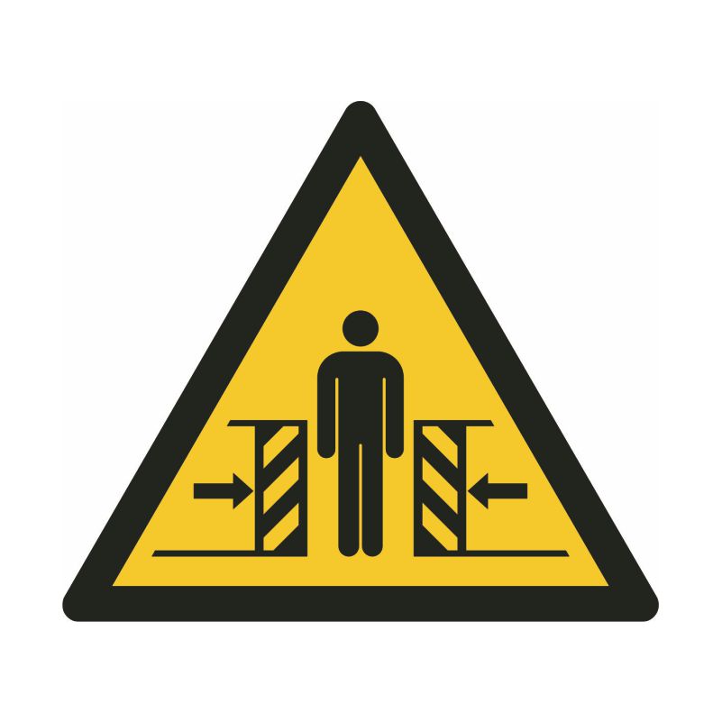 Waarschuwing knellingsgevaar Verkrijgbaar als high tack sticker of op aluminium (1 mm dik) in verschillende maten.