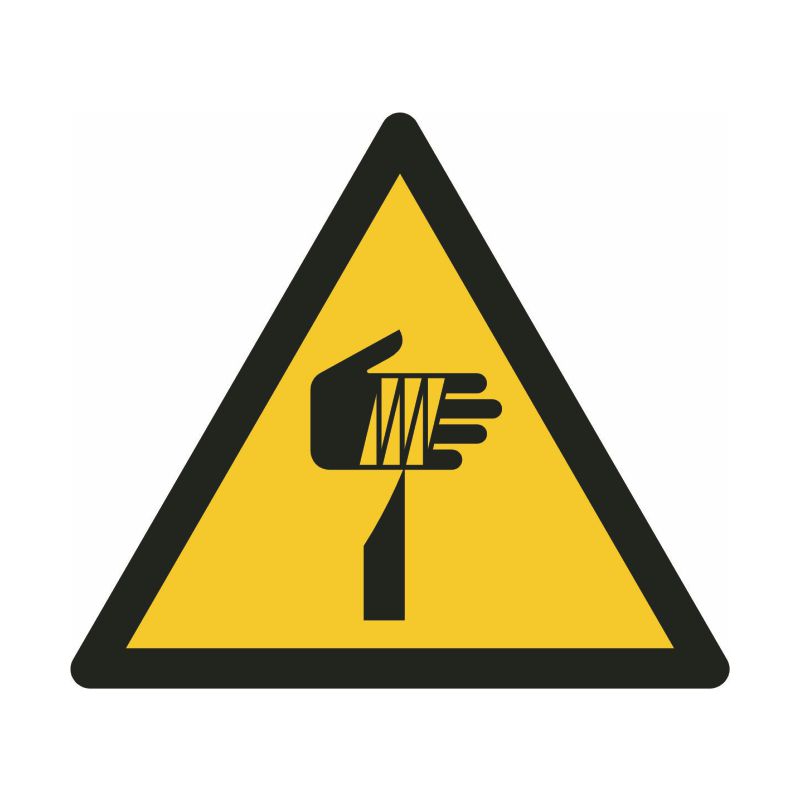 Waarschuwing voor scherpe onderdelen Verkrijgbaar als high tack sticker of op aluminium (1 mm dik) in verschillende maten.