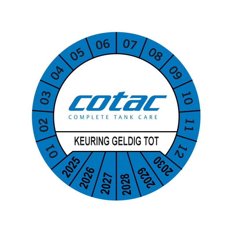 Keuringssticker met eigen logo en kleur van uw huisstijl. De keuringsstickers worden gedrukt op vinyl, zijn waterproof en gaan lang mee. Ze worden geleverd op strips per 5 stuks, te bestellen per 100 of 1000 stuks. Onze ronde keuringslabels zijn verkrijgbaar in verschillende maten en tevens verkrijgbaar in kleuren naar wens, zoals IMO jaarkleuren of de kleuren van uw huisstijl. Neem gerust vrijblijvend contact op.